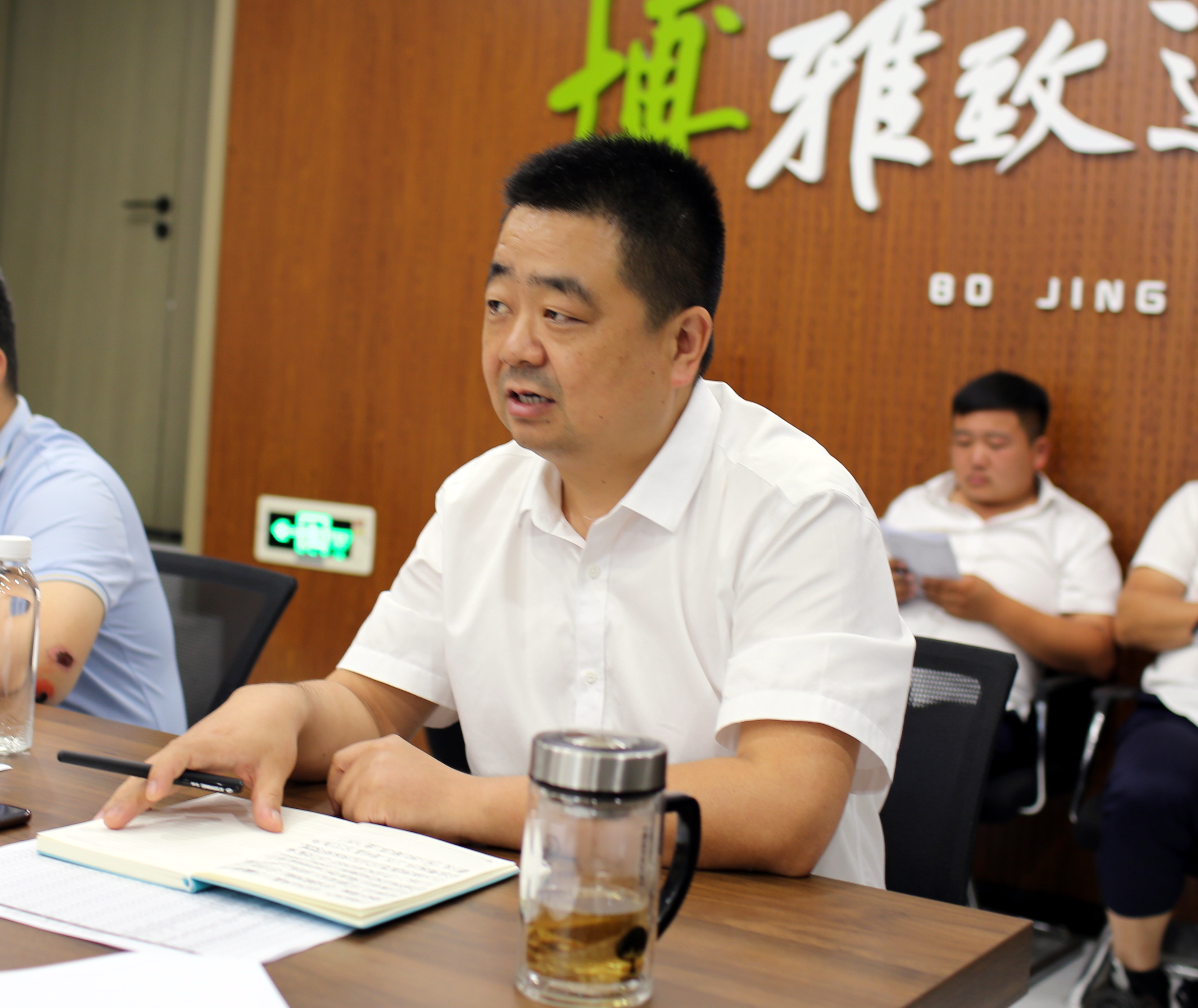 2023年7月22日下午,博景生態環境股份有限公司在總部會議室召開2023年上半年總結會議,回顧總結公司上半年工作完成情況,分析研判當前經濟形勢,安排部署下半年重點工作。公司董事長、總經理、中高層及員工代表共計59人出席本次會議。