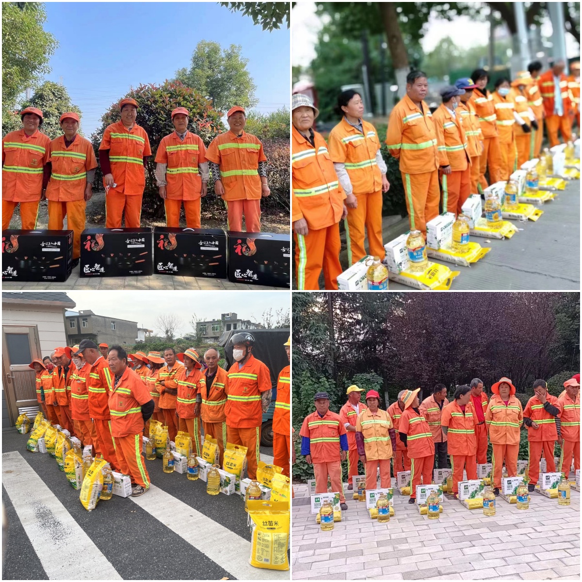 博景股份深入環衛工人的工作一線,為環衛工人送去關愛與溫暖。在關愛活動現場,博景股份向辛勤工作的環衛工人們表示衷心的感謝,對他們為城市環境做出的貢獻表示敬意。同時送上精心準備的禮品,包括鍋具三件套、大米食用油有機奶等健康食品,希望他們在為城市美容的同時,也能照顧好自己的身體。